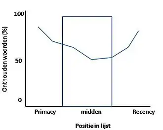 Seriële-positiecurve met begin- en recentheidseffect