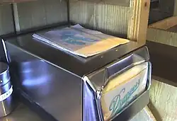 In horeca-instellingen wordt vaak gebruikgemaakt van bakjes, veelal van metaal, met aan een kant een opening waardoor de servetten gepakt kunnen worden. De servetten worden tegen de opening geduwd met een veer.