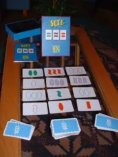 Een set bestaat altijd uit drie kaarten. Drie kaarten vormen alleen een set, als voor elk van de vier eigenschappen afzonderlijk geldt dat de eigenschap ofwel op alle drie kaarten gelijk is, ofwel op elke kaart verschillend is. De drie kaarten van een set komen dus in 0, 1, 2 of 3 eigenschappen overeen, en bij twee willekeurige kaarten is er altijd precies één andere kaart waarmee samen een set gevormd kan worden.