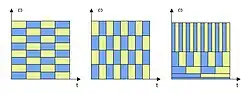 - de index m de positie van de vensterfunctie bepaalt. Doorgaans neemt m de waarden 0, N/2, N, 3N/2 ... aan zodat de opeenvolgende posities van de gebruikte vensterfunctie elkaar met 50% overlappen. Op die manier selecteren de opeenvolgende posities de delen [0..N], [N/2..3N/2], [N..2N]... van het totale signaal.
