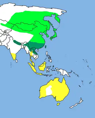 Verspreidingsgebied van de Siberische gierzwaluw.