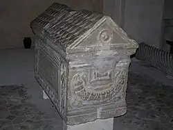 In de kerk bevindt zich de sarcofaag waarin de relieken van de heilige Andeolus worden bewaard. Het gaat om een oorspronkelijk Romeinse en heidense sarcofaag waarin een 5-jarige jongen werd begraven. Het Romeinse opschrijft op een zijde van de sarcofaag is bewaard. De sarcofaag werd tussen de 9e en de 12e eeuw bewaard in de Sint-Polycarpuskapel van Bourg-Saint-Andéol en verhuisde in de 12e eeuw naar de nieuwe Sint-Andeoluskerk. In die periode werd een zijde van de sarcofaag gebeeldhouwd met een voorstelling van twee heiligen en een opschrift.