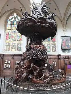 De naturalistische preekstoel van Jan-Baptist Van Hool en Jan-Frans Van Geel uit 1821 vertelt het verhaal uit het evangelie volgens Matteüs (Mt.4,18-20) van de roeping van de patroonheiligeAndreas en diens broer Petrus. Beide vissers worden te midden van hun werk door Jezus aangesproken en weggeroepen om Hem te volgen en voortaan mensenvisser te zijn. Zonder dralen, maar nog vol verbazing over zo'n oproep verlaten zij hun netten. In de preekstoel valt de realistische weergave op van de personages, hun vangst en hun werkmateriaal in een naturalistisch decor van rotspartijen en plantengroei.