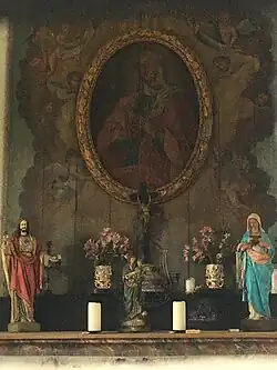 Boven het 18e-eeuwse altaar in Lodewijk XVI-stijl hangt een schilderij met een medaillon met de heilige Anna, omringd door cherubijnen.[1]