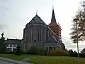 Het gebouw bestaat uit een zuidwesttoren met ingesnoerde naaldspits, een driebeukig schip met vijf traveeën en een koor van twee traveeën. De kerk is in 1904 in baksteen opgetrokken in neogotische stijl naar het ontwerp van architect Caspar Franssen. Het gebouw is volledig overwelfd met kruisribgewelven rustend op schalken.