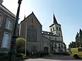 De kerk bestaat uit een westtoren met drie geledingen en een ingesnoerde spits, een driebeukig schip in mergel, een bakstenen transept en een bakstenen driezijdig gesloten koor.