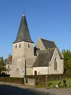 De voorgebouwde toren (12e eeuw) en het eenbeukig schip zijn romaans en opgetrokken in kalksteen en kwartsiet. De toren heeft een rechthoekige plattegrond en een merkwaardige dubbele spits die wordt bekroond door een haan en een hen. In de 15e en 16e eeuw werd een pseudotransept toegevoegd waardoor een deel van het romaanse schip moest worden gesloopt.