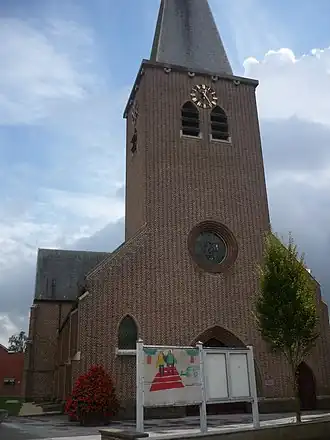 - De gotische Sint-Jobkerk dateert uit 1511 en bestaat daarmee 500 jaar in 2011. De twee zijbeuken dateren uit de 19e eeuw.[6] In mei 1940 werd de kerk zwaar beschadigd door terugtrekkende Belgische troepen, die de toren opbliezen om te voorkomen dat de oprukkende Duitsers deze als uitkijkpost zouden kunnen gebruiken.[3] Bij de herstellingswerken na de oorlog werd een nieuwe, moderne toren gebouwd.