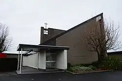De kerk werd gebouwd in de stijl van het naoorlogs modernisme. Het is een bakstenen gebouw onder lessenaardak. De noordzijde heeft een hoog en smal glas-in-loodraam. De zuidzijde heeft een klokkenmuur, getooid met een kruis.