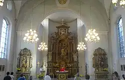 Het orgel staat op de bovenste van de twee galerijen. Het driemanualige barokke instrument bezit 33 klinkende registers.