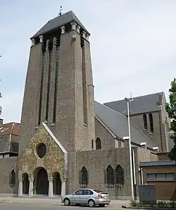 Deze kerk werd gebouwd ten tijde van de grote stadsuitbreidingen in de jaren '20 en '30 van de 20e eeuw. Het gebouw, naar ontwerp van Jef Huygh en Flor Van Reeth, kwam tot stand in 1933-1936.