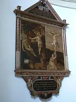 Links naast het orgel is het 2,70 meter hoge epitaaf voor graaf Jan II van Rietberg te zien. Het werd in 1562 in opdracht van zijn vrouw Agnes, gravin van Bentheim-Steinfurt, vervaardigd door een onbekende kunstenaar.
