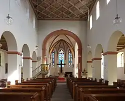 In de 12e en 13e eeuw werd een drieschepige romaanse basiliek opgericht, waarvan de toren en het kerkschip bewaard zijn gebleven. In de 15e eeuw werden het noordelijke zijschip, het middenschip en het laatgotische koor vergroot. De zijbeuken kregen in de 18e en 19e eeuw een barokke inrichting. Eind 19e eeuw werd het zuidelijke koor in neogotische stijl verbouwd.