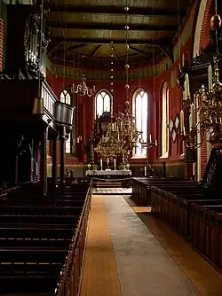 Bij een restauratie werd de neogotische beschildering van 1887 in de oude kleuren hersteld. Het interieur heeft een houten zoldering, maar aan de kolommen en de schildbogen is nog te zien dat de kerk ooit gewelven bezat. Opvallend zijn het grote aantal luchters in de kerk. In het zuidelijke zijschip hangt de oudste luchter, een smeedijzeren laatgotische luchter uit de 15e eeuw. Het daarop geplaatste gewij zou volgens de overlevering van een hert afkomstig zijn, dat tijdens de jacht zijn toevlucht in de kerk had genomen. De zogenaamde Hesilo-luchter werd in het jaar 1889 geschonken en is een (kleinere) kopie van de beroemde luchter uit de dom van Hildesheim. Om de band zijn twaalf ronde torens aangebracht, die voor de twaalf stadspoorten van het hemelse Jeruzalem staan. De overige luchters dateren uit de 17e tot de 19e eeuw en werden in Vlaanderen gemaakt.