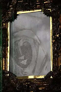 De bedevaart gaat terug op een gebeurtenis op 17 januari 1797, toen er volgens het oudste document over het genadebeeld op een raam van een boerenwoning een niet door mensenhanden getekende afbeelding van een vrouwenhoofd verscheen. Het was de 18-jarige dochter van het boerengezin, Rosina Bucher, die de afbeelding als eerste ontdekte. De afbeelding heeft geen kleuren, lijkt op een kopergravure en werd direct als een beeltenis van de Heilige Maagd geïdentificeerd. De afbeelding bleef na de ontdekking zichtbaar, dag en nacht en ongeacht of de kamer nu verwarmd of onverwarmd was. Zelfs nadat het raam aan beide zijden werd gewassen en weer schoon leek, verscheen er even later in het midden van het raam een kleine vlek, die zich uitbreidde over de rest van het raam totdat de beeltenis van Maria weer volledig hersteld was. Het wegwassen en terugkomen van de beeltenis herhaalde zich nadat op verzoek van de familie verschillende geestelijken dit verschijnsel met eigen ogen kwamen vaststellen. Nadat pelgrims en nieuwsgierigen uit omliggende plaatsen naar de beeltenis kwamen, werd het raam ingepakt, verzegeld en naar Innsbruck verzonden om door een sceptische commissie te worden onderzocht. Op 24 maart 1797 keerde het raam ten slotte naar Absam terug en onder het luiden van klokken in processie naar de kerk gebracht. Sindsdien wordt het miraculeuze raam als een genadebeeld in de kerk vereerd. Buiten werd boven het portaal een kopie van de afbeelding aangebracht.[2][3]