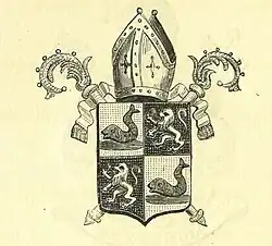 gravure met wapenschild van abt vander poorten | ||||