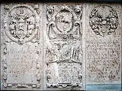 Meer naar boven is een tribune met een stenen reling gebouwd, met daarin de oudste reliëfvoorstelling van het wapenschild van Košice.