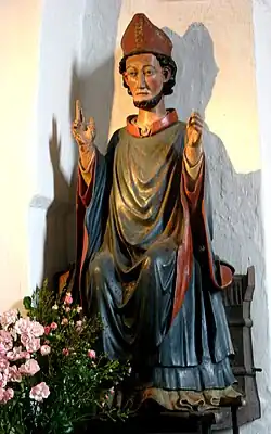De naam van de kerk werd na de reformatie niet gewijzigd. Van de patroonheilige staat links voor het altaar aan de noordelijke pijler van de koorboog een beeld opgesteld. Het beeld werd omstreeks 1300 gemaakt.