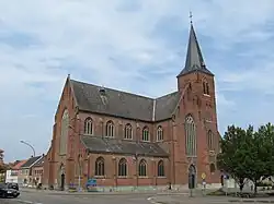 Het betreft een georiënteerde driebeukige neogotische kruisbasiliek, gebouwd in baksteen. De toren bevindt zich in de zuidelijke kooroksel en heeft vier geledingen en een ingesnoerde naaldspits. Het koor is vijfzijdig afgesloten.