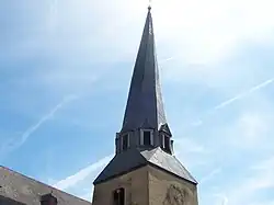 De westelijke toren stamt uit het begin van de 14e eeuw en heeft romaanse stijlvormen. Bijzonder is de 24 meter gedraaide spits, zoals dat ook het geval is bij de Sint-Clemenskerk in Mayen. Wegens houtrot moest de spits in 2013 worden gesloopt. In april 2014 werd een nieuwe spits met dezelfde karakteristieke vorm teruggeplaatst.