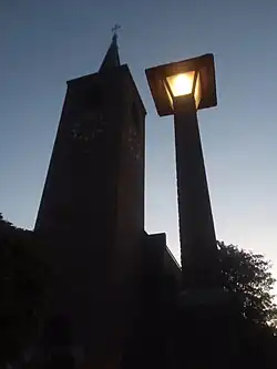 Voor de twee bakstenen straatlantaarns met granieten zitbanken,[18] aan de Lammenschansweg voor de ingang van de kerk, gebruikte Kropholler zijn ontwerp voor de in 1932 onthulde Burgemeester Wendelaarlantaarn in Alkmaar.[19] Ook voor het gemeentehuis van Waalwijk (inmiddels Huis van Waalwijk met een andere functie) staat sinds 1936 een identieke straatlantaarn van Kropholler.[20]