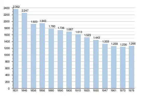 - Bronnen:NIS, Opm:1831 tot en met 1970=volkstellingen; 1976 = inwoneraantal op 31 december