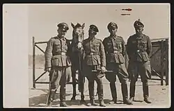 Poserende SS'ers in Sobibór. Niemann houdt het paard vast.