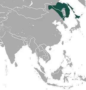 De soort komt voor in het uiterste noordoosten van het Aziatische continent, grenzend aan de Grote Oceaan. Het verspreidingsgebied omvat Rusland, vanaf de monding van de Amoer en inclusief het eiland Sachalin, tot aan Vladivostok, verder in het noordoosten van de Volksrepubliek China de provincies Heilongjiang, Jilin en het oosten van Binnen-Mongolië, dan het noordoosten van Noord-Korea en de Japanse eilanden Hokkaido, Rebun, Rishiri, Teuri, Moyuyuri, Yagishiri en Daikokujima.