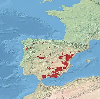 | Verspreidingsgebied van de Spaanse steenbok. | ||||||||||||||