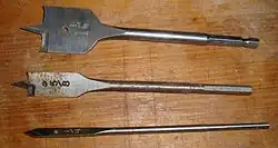 Het snijdend blad van de boor is vlak met in het midden een centreerpunt. Vaak zijn er aan de uiteinden minder ver uitstekende punten ('voorsnijders') die ontworpen zijn om houtvezels te breken. De inspanschacht van de boor is meestal zeshoekig afgevlakt om slippen in de boorhouder te voorkomen.