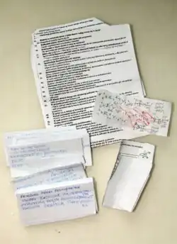 Spiekbriefjes worden zo genoemd omdat ze door studenten kunnen worden gebruikt om te spieken op een examen zonder dat de leraar het opmerkt. Vaak is een spiekbriefje een stukje papier beschreven met vergelijkingen of tekst. Het maken van een spiekbriefje kan al een nuttig effect hebben doordat de leerling de stof moet comprimeren.