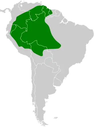 De soort komt voor in het Amazoneregenwoud en telt 4 ondersoorten:[2]