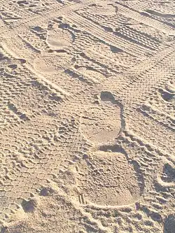 Sporen achtergelaten door onder meer voetgangers, olifanten en automobielen.