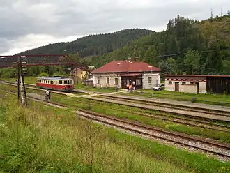 | 22,87 | Mníšek nad Hnilcom (s) | • tot 1965: aansluiting met smalspoorlijn naar: Smolnícka Huta. • vanaf 1965: smalspoorlijn buiten dienst. |