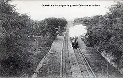 Op 1 mei 1883 werd een halte geopend voor reizigersverkeer op de spoorlijn Grande Ceinture. Deze werd begin 1900 omgevormd tot een station. Dat station bevond zich op kilometerpunt (PK) 103.4 van de Grande Ceinture-lijn (48° 42′ 56″ NB, 2° 16′ 30″ OL), ter hoogte van de huidige Chemin de Massy. Het station werd opgeheven op 15 mei 1939 en het station werd nadien afgebroken. Het lag ook relatief ver van het centrum van Champlan en na de aanleg in 1972 van de A10 was de toenmalige ligging ten noorden van de autosnelweg helemaal niet opportuun meer voor een nieuw station voor Champlan.