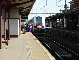 In het station rijden OS-treinen (omnibus = stoptrein), sneltreinen, REx-treinen (REx=Regional Express sneltrein), R-treinen (R=Rychlík: de traagste categorie langeafstandstreinen).