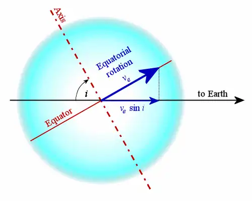 Het gedeelte van de radiële snelheid zichtbaar door lijnverbreding hangt af van de glooiingshoek van de pool van de ster ten opzichte van de waarnemingsrichting. De verkregen waarde wordt gegeven als , waarbij ve niet altijd bekend is, dus geeft het resultaat een minimale waarde voor de radiële snelheid van de ster. Tenminste, als i niet een rechte hoek is, want dan is de eigenlijke snelheid groter dan . In snel roterende sterren kan polarimetrie een goede manier zijn de werkelijke snelheid in plaats van alleen de rotatiesnelheid te meten; deze methode is tot dusver alleen op Regulus toegepast.