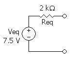 De grootte van de vervangende spanningsbron en de weerstand worden als volgt bepaald:
