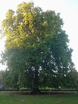 Een opmerkelijke boom van het domein is de plataan (platanus acerifolia) die voor het kasteel staat. In zijn soort wordt het als een van de mooiste van Vlaanderen beschouwd. Deze plataan is ongeveer 210 jaar oud. In het als Engelse tuin aangelegde deel groeit de moerascipres (taxodium distichum) en de ginkgo biloba (Japanse notelaar). Ten westen van het kasteel bevindt zich een amberboom (liquidambar styraciflua), een Noord-Amerikaanse loofboom.