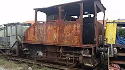 - Drie locomotieven voor het smalspoor. De voornaamste is een Haine Saint-Pierre uit 1891.