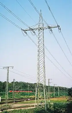 - ↑ De weerstand is afhankelijk van de dikte van alle bovenleidingsdraden (ook de ophangdraden worden gebruikt voor de stroomtransmissie).
