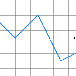is stuksgewijs lineair en bestaat uit vier lijnstukken, de grafiek van deze functie wordt in de grafiek rechts getoond. Aangezien de grafiek van een lineaire functie een lijn is, bestaat de grafiek van een stuksgewijze lineaire functie uit lijnstukken en halve lijnen.