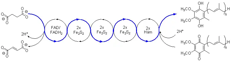 - 2e− (binnen) + FADH2 2e− (buiten) + FAD + 2H+