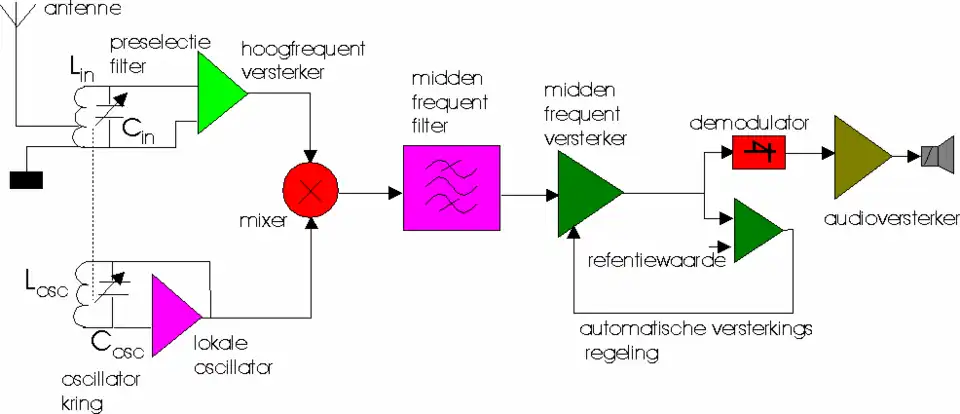 Gedetailleerde beschrijving van de opbouw van een superheterodyne ontvanger