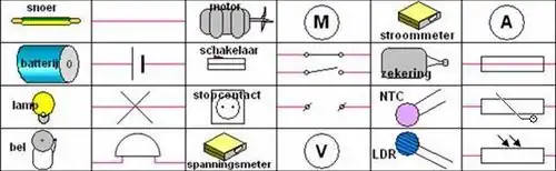 De symbolen voor elektrische schema's worden beschreven: