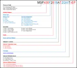 De MSP430 kan met verschillende soorten geheugen zijn uitgerust. Het toegepaste geheugen wordt vermeld in het typenummer: