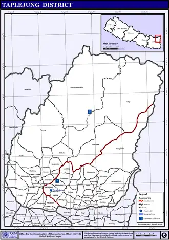 - Dorpscommissies (50): Ambegudin, Ankhop (of: Angkhop), Chaksibote, Change, Dhungesaghu (of: Dhungesanghu), Dokhu, Dummrise (of: Dumise), Ekhabu (of: Ikhabu), Hangdeva (of: Hangdewa), Hangpang, Kalikhola, Khamlung, Khejenim, Khewang (of: Khebang), Khokling (of: Khoklin), Lelep, Limbudin (of: Limbundin), Lingtep, Linkhim (of: Limkhim), Liwang, Mamankhe (of: Mamangkhe), Mehele, Nalbu, Nankholyang (of: Nangkholyang, of: Namkholyang), Nidhuradin (of: Niguradin), Olangchung Gola (of: Olangchunggola), Papung, Pedang, Phakumba, Phawakhola, Phulbari, Phungling (vroeger: Taplejung), Phurumbu, Sadewa, Sangu (of: Sanghu), Santhakra, Sanwa (of: Sawa), Sawadin (of: Sawandin), Sawalakhu (of: Sablakhu), Sikicha (of: Sikaicha, of: Sikecha), Sinam, Surumakhim (of: Surumkhim), Tapethok, Tellok, Thechambu, Thinglabu, Thukima (of: Thukimma), Thumbedin, Tiringe (of: Tringe), Yamfudin (of: Yamphudin).