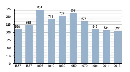 - Bron: INE, 1857-2011: volkstellingen