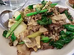 - Kwee-teeuw raad na: Chinese "rijst-tagliatelle" (sen yai) gebakken met gemengde groenten, varkensvlees, kip of zeevruchten en dan overgoten met een gebonden saus.