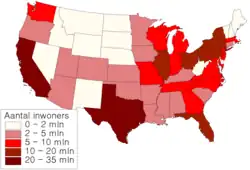 In de (goede) voorbeeldkaart wordt (in klassen) de dichtheid weergegeven van het verschijnsel op basis van 'oplopende' / volgordelijke (in dit geval van lichtrood naar donkerrood) kleuren. Het gaat hier om de bevolkingsdichtheid. Doordat nu met klassen wordt gewerkt, is dit overzichtelijker dan de figuratieve kaart, maar er verlies van data. De aantallen inwoners als kleine labels in de staten was een oplossing geweest.